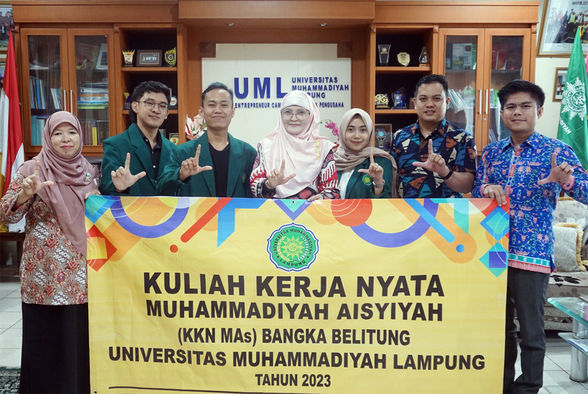 Rektor Universitas Muhammadiyah Lampung (UML) Dr. Mardiana, M.Pd.I. dan Lembaga Penelitian dan Pengabdian Kepada Masyarakat (LPPM) melepas keberangkatan mahasiswa Kuliah Kerja Nyata Muhammadiyah Aisyiyah (KKN MAs) Bangka Belitung tahun 2023 pada Sabtu (28/07/2023).