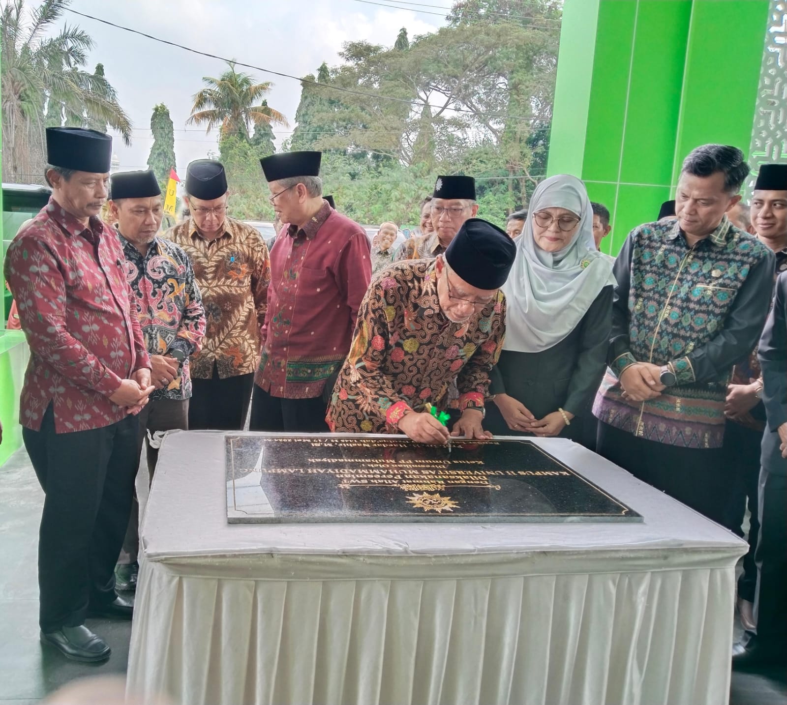 Acara peresmian gedung kampus II yang ditandai dengan penandatanganan prasasti dan pemotongan pita oleh Ketua PP Muhammadiyah Bapak Prof. Dr. H. Haedar Nashir, M. Si didampingi oleh Rektor UML Ibu Dr. Mardiana, M. Pd. I serta Ketua PWM Lampung Prof. Dr. Sudarman, MA berlangsung khidmat.